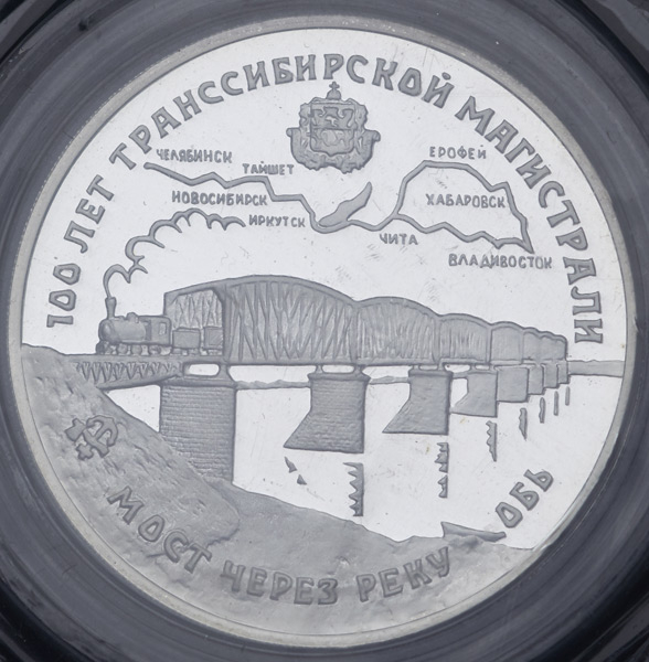 3 рубля 1994 "100 лет Транссибирской магистрали: мост через реку Обь" (в запайке) ЛМД