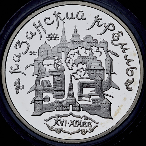 На реверсе монеты изображены: панорамы памятников архитектуры Казанского Кремля, по окружности - надписи: вверху - "КАЗАНСКИЙ КРЕМЛЬ", внизу - "XYI-XIX вв."
