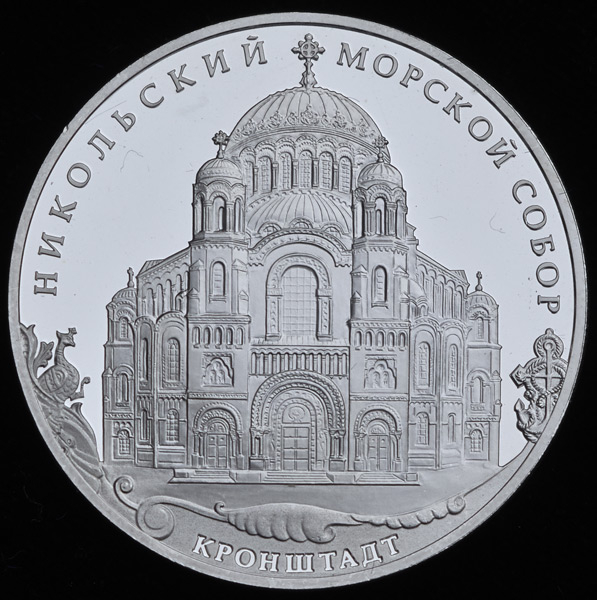 На монете изображен Кронштадтский Морской собор в честь Святителя Николая Чудотворца, Кронштадтский район г. Санкт-Петербурга.