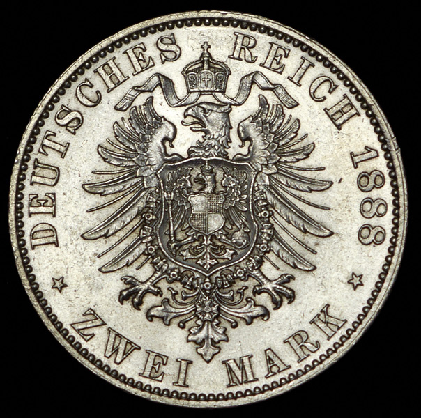 Легенда реверса: "DEUTSCHES REICH 1888 ZWEI MARK".
