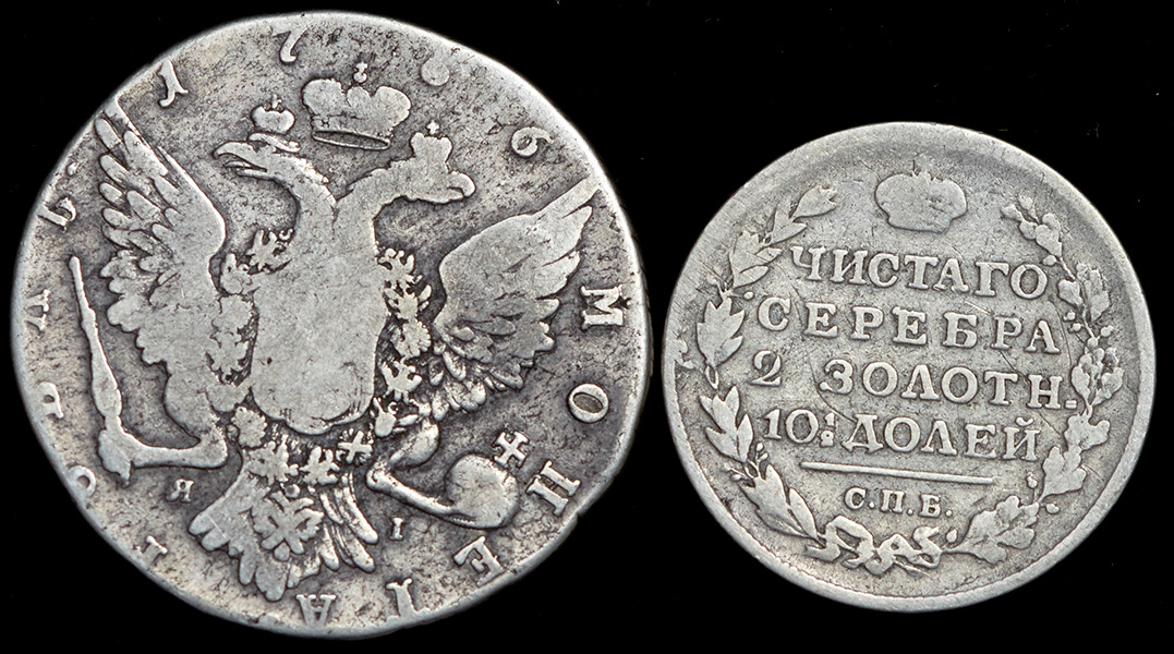 1) Рубль 1766 года СПБ-ТI-ЯI