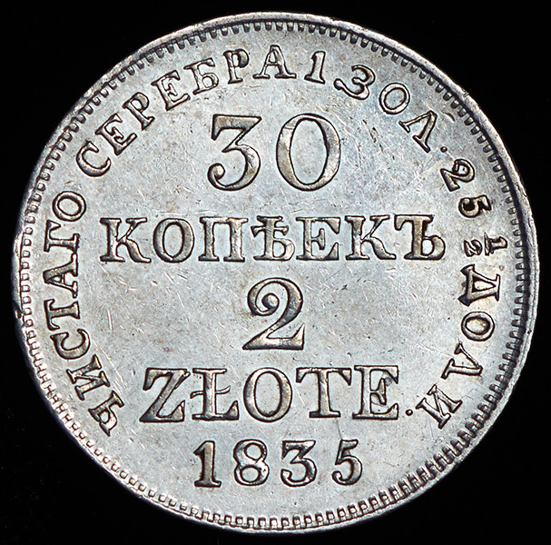 30 копеек - 2 злотых 1835 MW