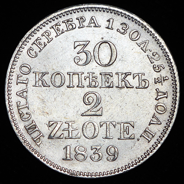 30 копеек - 2 злотых 1839 MW