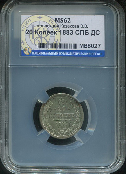 20 копеек 1883 (в слабе) СПБ-ДС