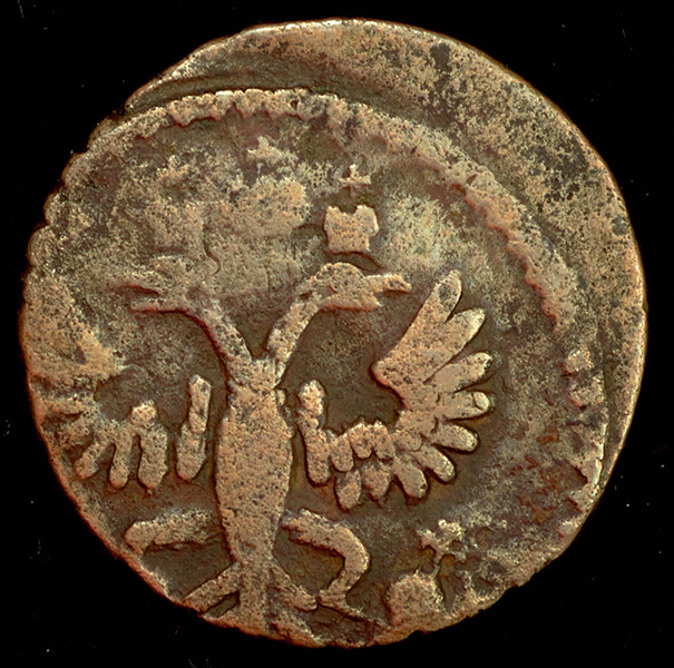 Перечекан из "крестовой" копейки. Четкие следы предыдущей монеты.