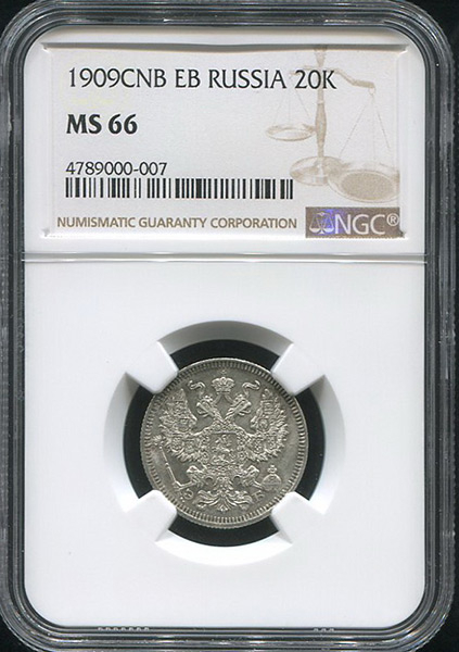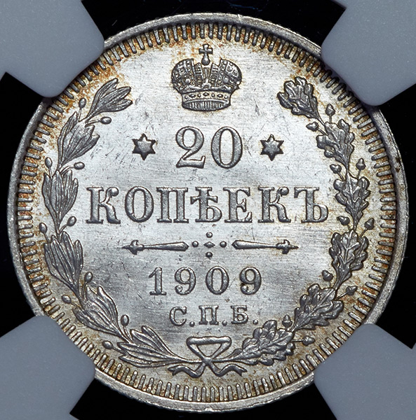 20 копеек 1909 (в слабе) СПБ-ЭБ