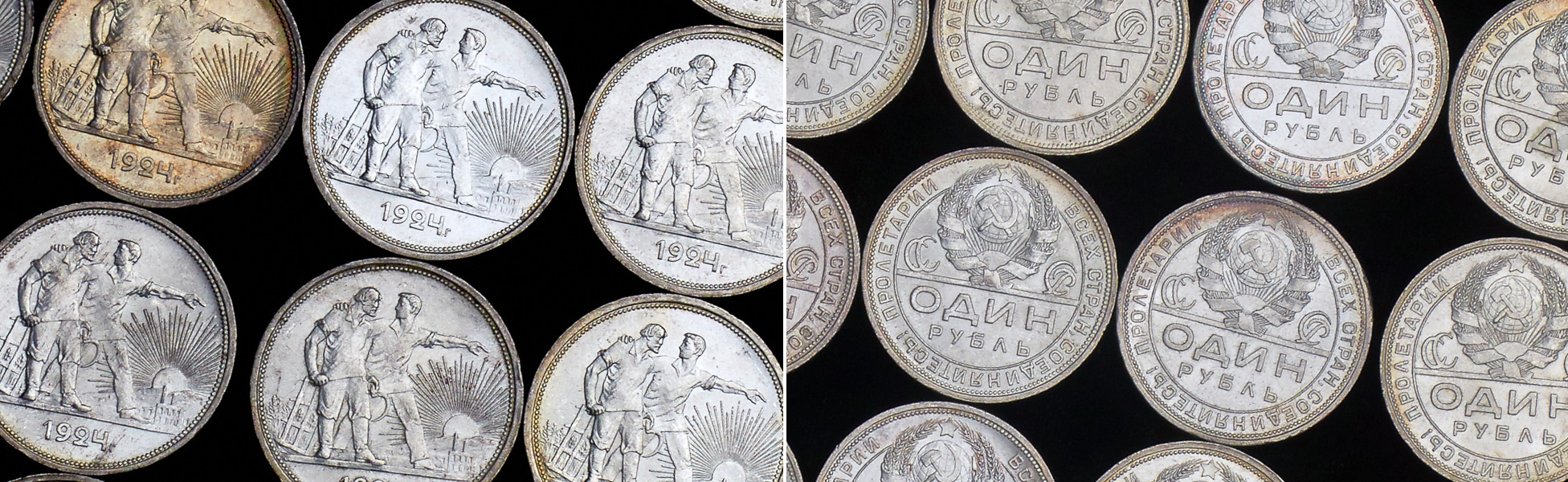 В набор вошли 26 серебряных монет Рубль 1924 года в отличной сохранности.