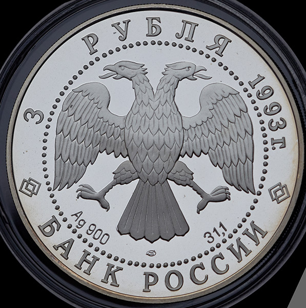Эта серебряная монета из серии "Памятники архитектуры России".