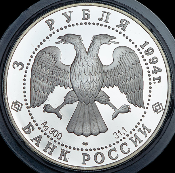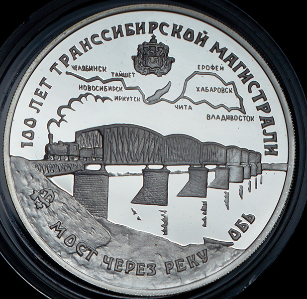 3 рубля 1994 "100 лет Транссибирской магистрали: мост через реку Обь" ЛМД