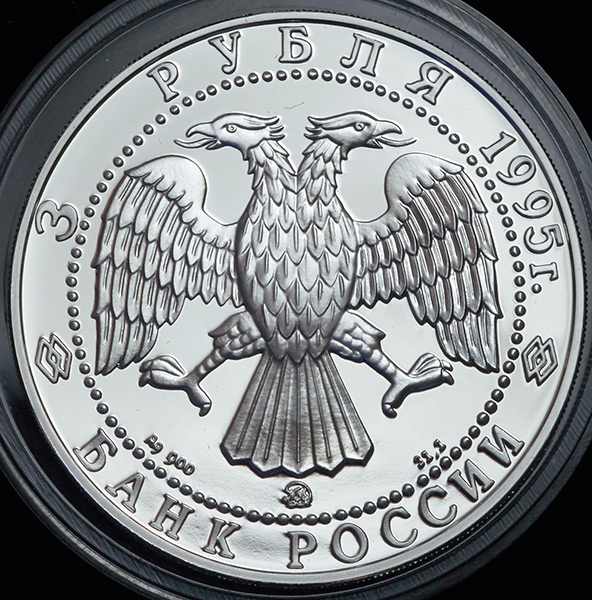 3 рубля 1995 "Исследование Русской Арктики: Р. Амундсен" ММД