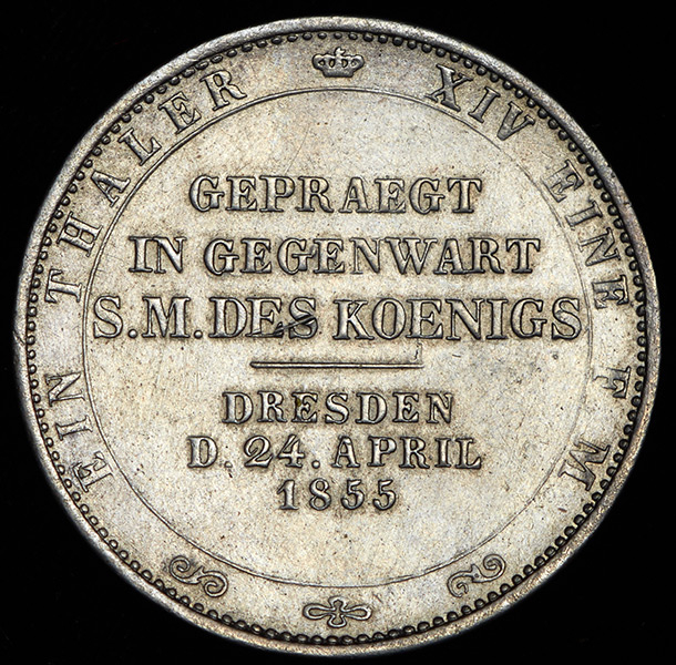 Талер 1855 "Посещение монетного двора Королем Иоганном" (Саксония) F