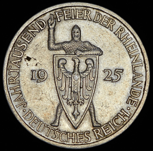5 марок 1925 "1000-летие Рейнланда" (Германия) F