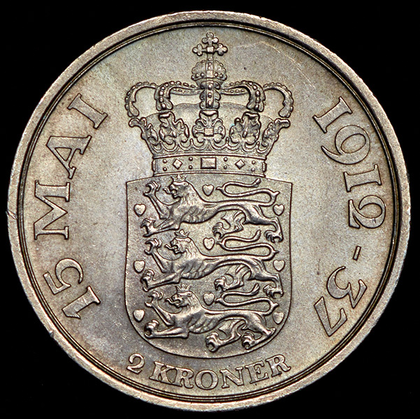 2 кроны 1937 "25 лет правления короля Кристиана X" (Дания)