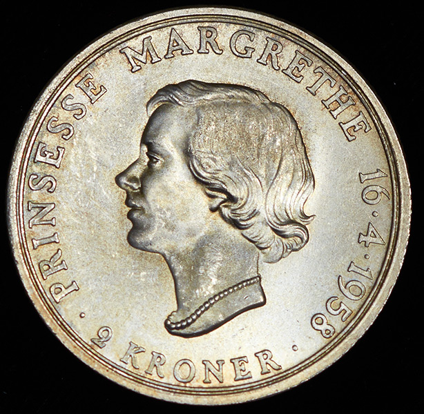 2 кроны 1958 "18 лет принцессе Маргрете" (Дания)