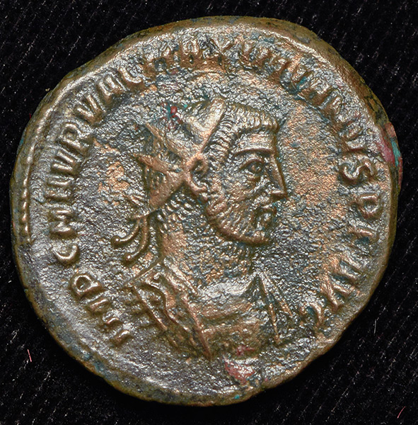 Легенда аверса: IMP(erator) C(aesar) M(arcus) AUR(elius) VAL(erius) MAXIMIANVS AVG(ustus) (Император Цезарь Марк Аврелий Валерий Максимиан Август).