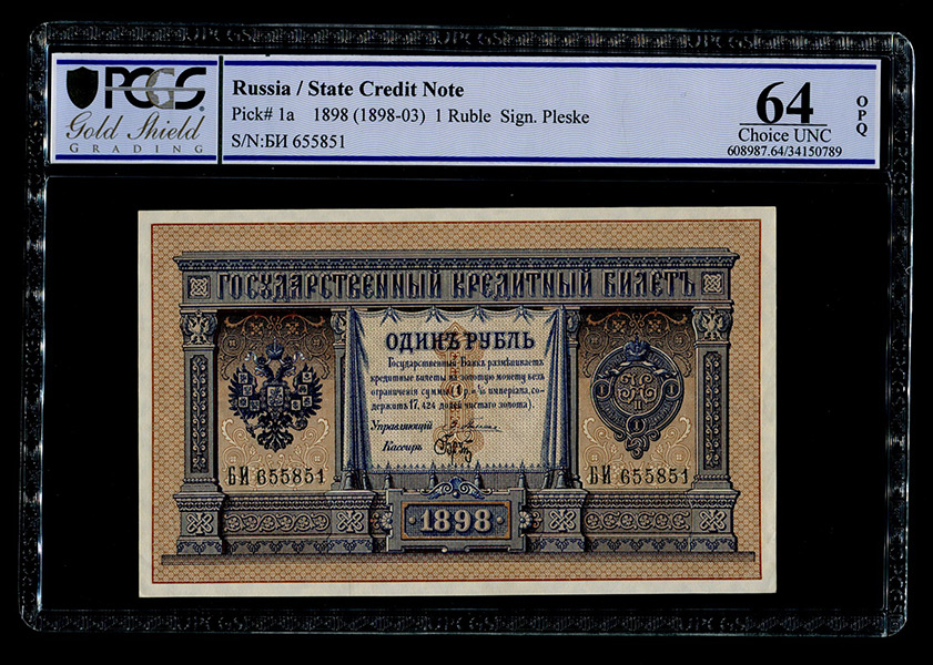 Царский выпуск. Управляющий Э.Д. Плеске, кассир Брут. В слабе PCGS Choice UNC 64. Редка в подобной сохранности.
