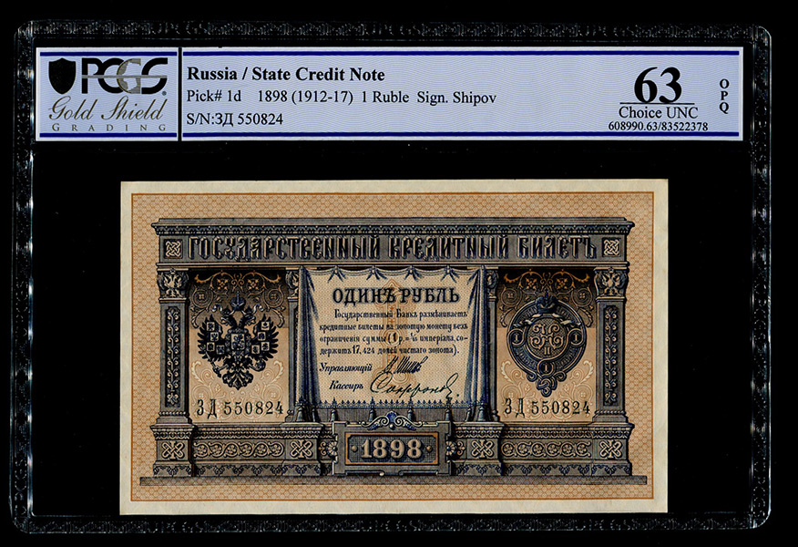Царский выпуск. Управляющий Шипов, кассир Сафронов. В слабе PCGS Choice UNC 63.