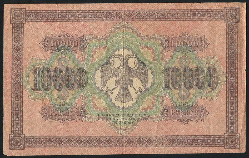 Народный Банк РСФСР, государственный кредитный билет 10000 рублей образца 1918 года, АЗ 138244. Водяной знак горизонтальный. Кассир Гаврилов.