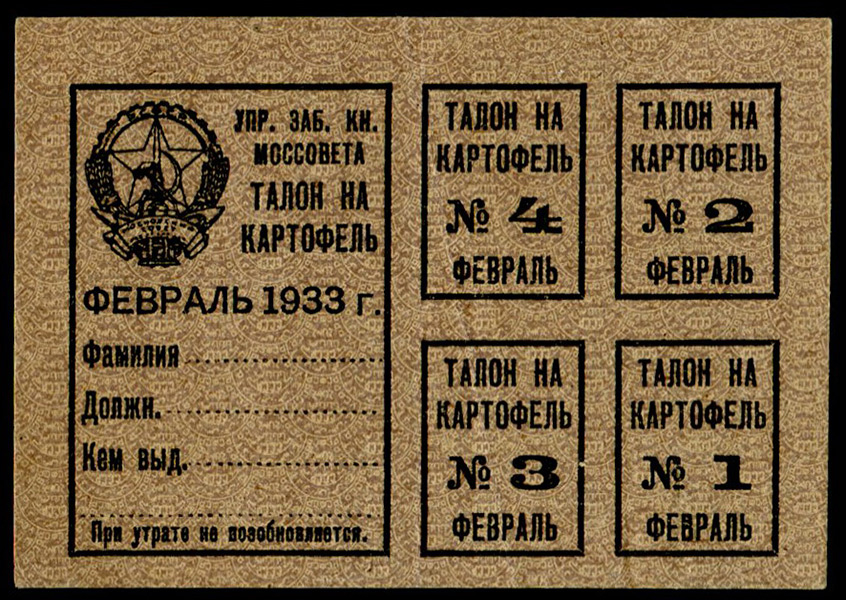 Управление заборных книжек Моссовета, талон на картофель, февраль 1933 г. Размер 50х72 мм. Редкий.