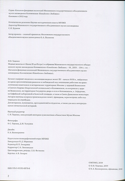 Книга Таценко О.В. "Медные монеты от Ивана III до Петра I" 2019