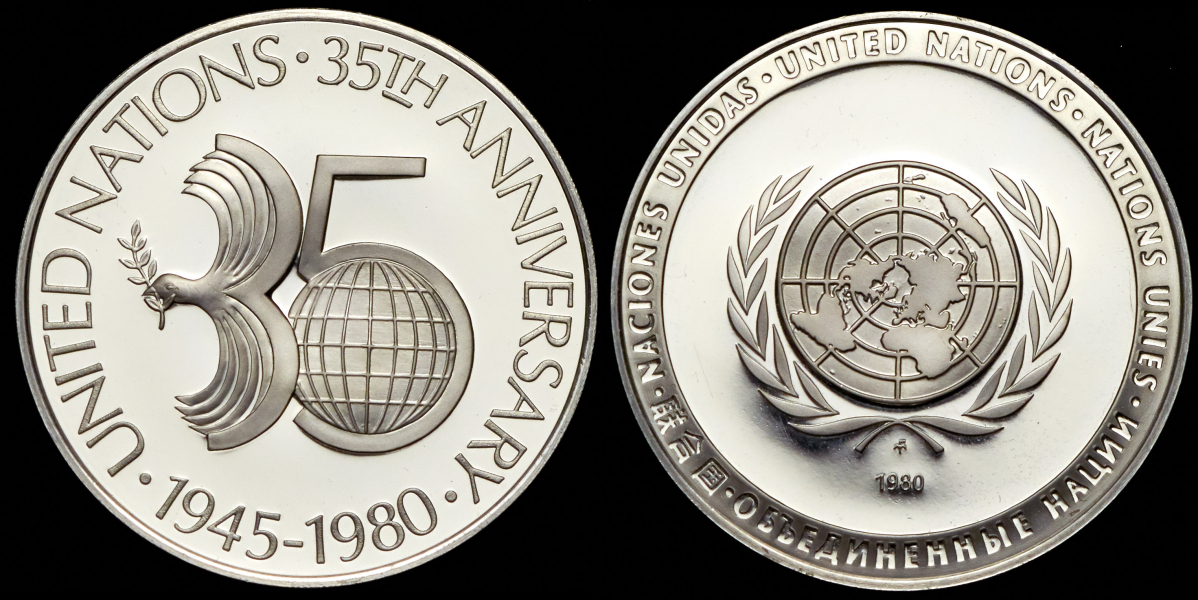 Медали ООН, Ag 0,925, 38 мм (19,74 г), Proof. Клейма на гурте