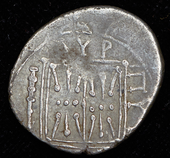 I в. до н.э. Изображение коровы с теленком. Сверху орел.