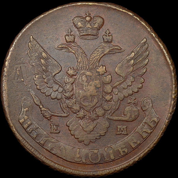 "Павловский перечекан". Чеканка в 1797 году на Екатеринбургском Монетном Дворе. Гурт сетчатый.