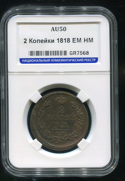 2 копейки 1818 (в слабе) ЕМ-НМ