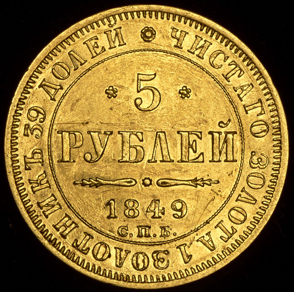 5 рублей 1849 СПБ-АГ