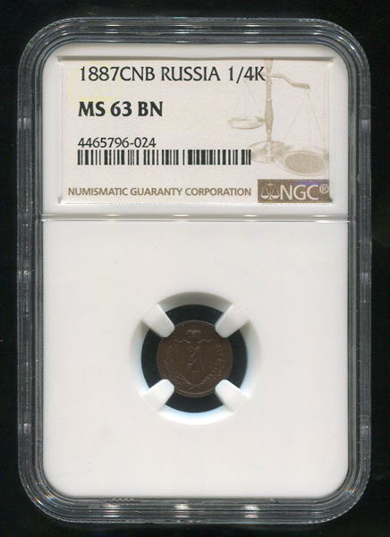 1/4 копейки 1887 (в слабе) СПБ