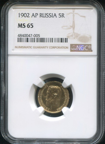 5 рублей 1902 (в слабе) (АР)