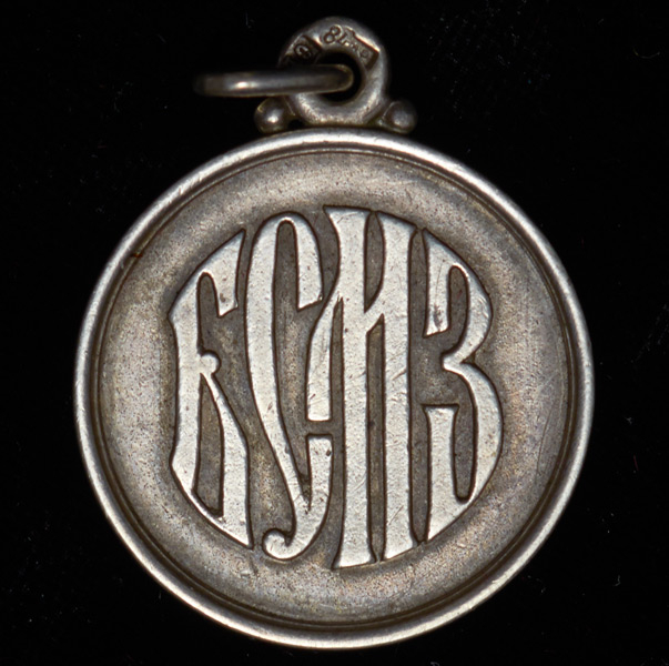 Клейма на оборотной стороне жетона: пробирное “84” и инициалы пробирного инспектора А. Романова и мастера именное «ДО».