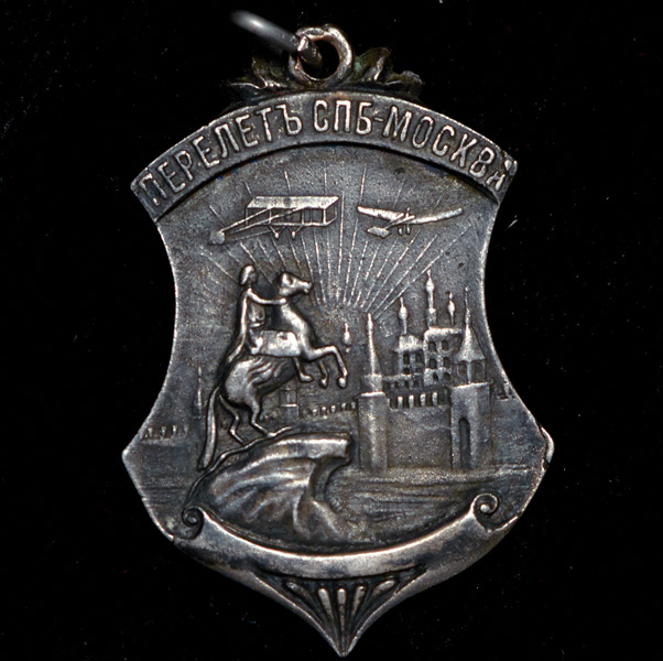 Жетон "В память первого в России группового перелета Санкт-Петербург - Москва" 1911