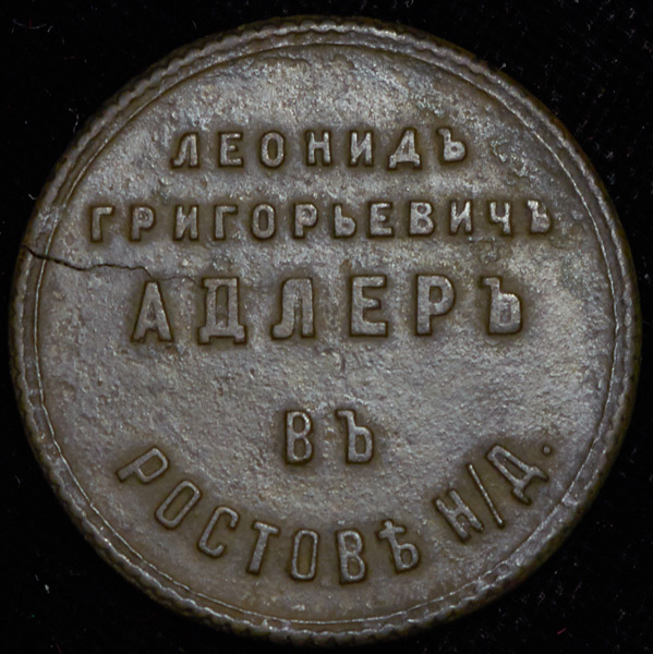 Жетон "Музыкальная торговля. Леонид Григорьевич Адлер в Ростове-на-Дону"
