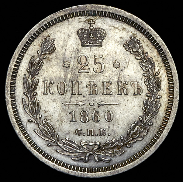 25 копеек 1860 СПБ-ФБ