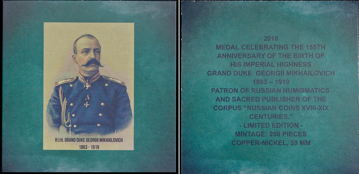 Диаметр 39 мм. Тираж 250 экземпляров.
