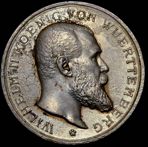 На аверсе портерт Вильгельма II и надпись по кругу «Вильгельм II Король Вюртембергский»