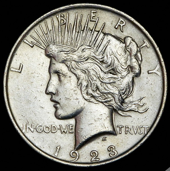 Первоначально Антонио де Франчиски планировал поместить на реверсе белоголового орлана — геральдический символ США, держащего в когтях разломанный меч. Однако такое изображение могло символизировать также и поражение. В связи с этим гравёр Морган заменил меч на оливковую ветвь, которая сама по себе символизирует мир. Орёл сидит на скале, на которой находится надпись «PEACE». Благодаря ей, монета получила своё название «мирного доллара».