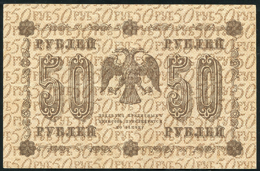 Государственный кредитный билет 50 рублей 1918 года, АА-092.