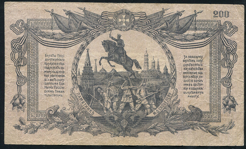 Билет Государственного казначейства Главного Командования вооруженными силами на Юге России 200 рублей образца 1919 года, АГ.-036.