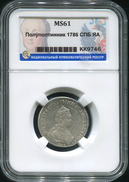 Полуполтинник 1786 (в слабе) СПБ-ЯА