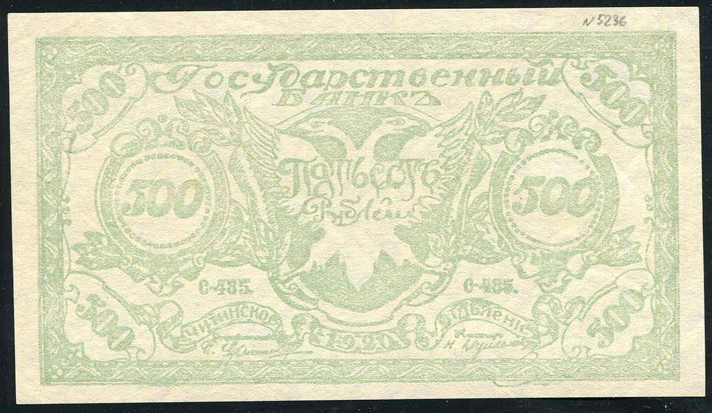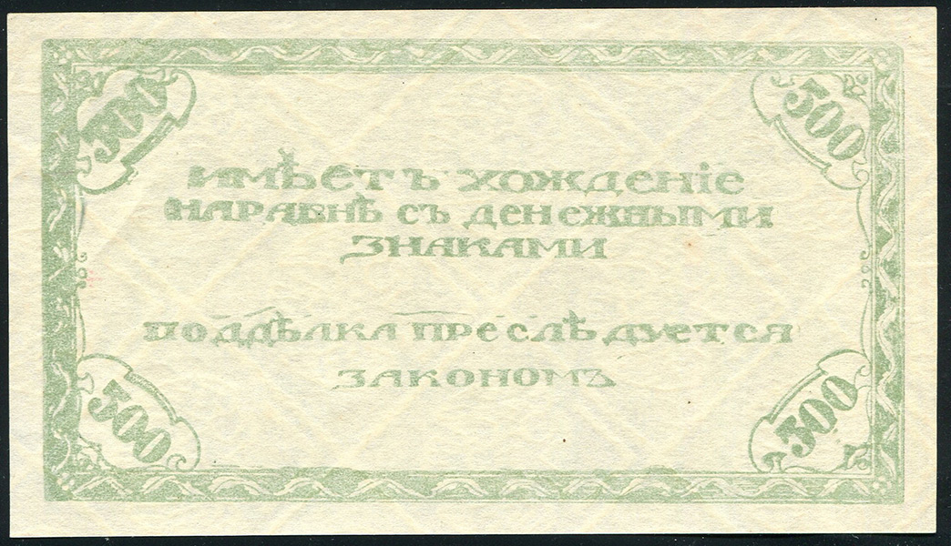 500 рублей 1920 года, C-485, Читинского отделения Государственного банка. 3-й выпуск - рисунок светло-зеленый.