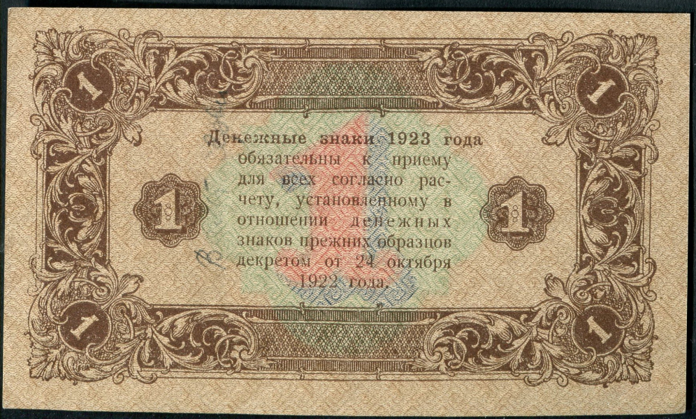 Второй тип: текст на оборотной стороне «Денежные знаки 1923 года обязательны к приему для всех согласно расчету, установленному в отношении денежных знаков прежних образцов декретом от 24 октября 1922 года.»