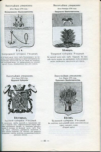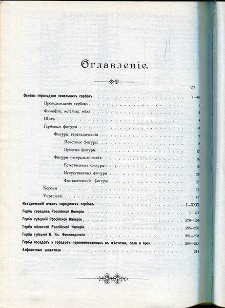 Настоящий труд имеет главной целью дать изображение русских земельных гербов, строго придерживаясь того изображения, которое было утверждено для них верховной властью и которое внесено в полное собрание законов Российской империи. Кроме того, автор задался целью указать правила русской геральдики или гербоведения, найти законы, на основании которых создавались наши гербы, и попытаться установить такие правила, которые, точно соответствуя правилам и духу западной геральдики, могли бы быть применены ко всем русским гербам.