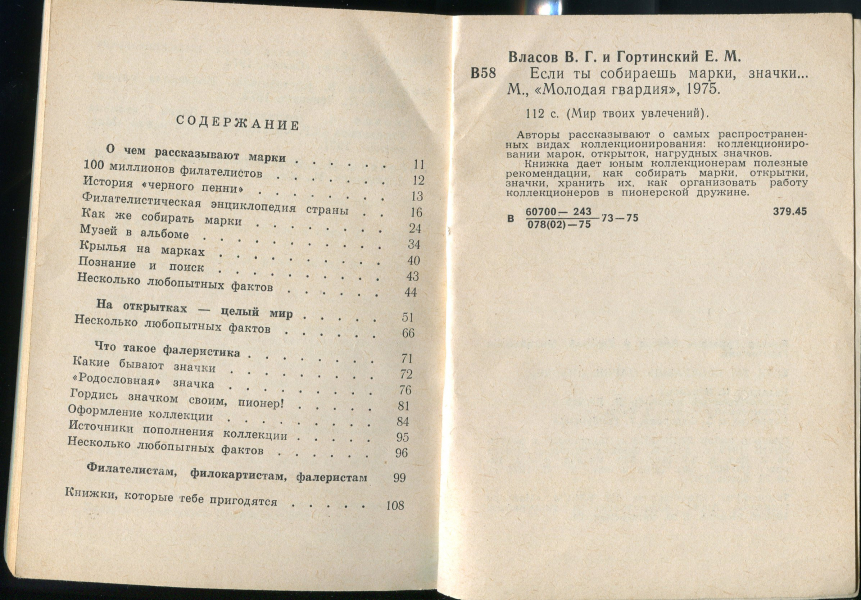 Книга Власов В., Гортинский Е. "Если ты собираешь марки, значки…" 1975