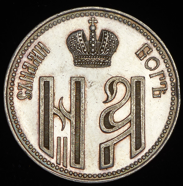 На аверсе под короной вензеля Николая II и Александры Федоровны, по сторнам надпись "СЪ НАМИ БОГЪ".