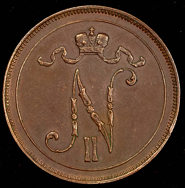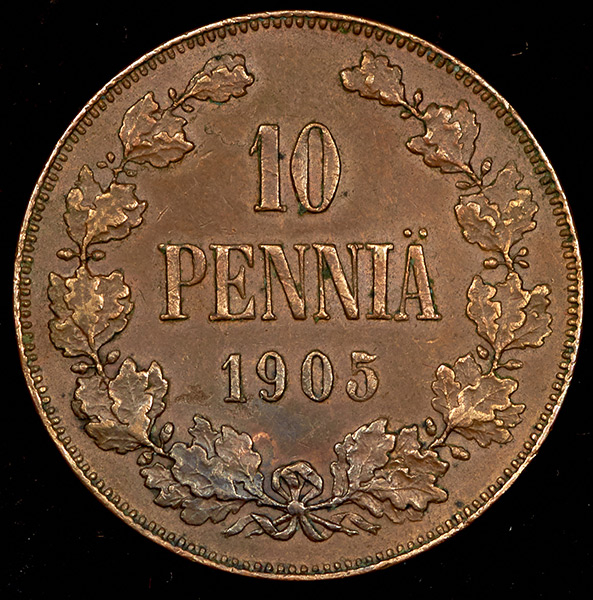 Уздеников 4777. Биткин 429. Для Финляндии. Гельсингфорсский монетный двор.Ровная коричневая патина.