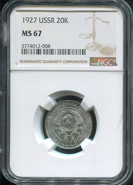 В слабе NGC.По данным фирмы NGC, данный экземпляр получил наивысшую для данных монет оценку сохранности.