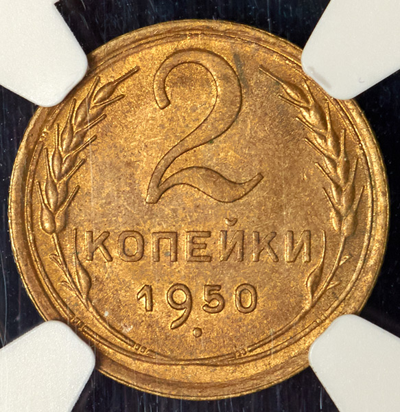 Реверс шт.В — цифра «2» номинала тонкая, с узелками на стеблях колосьев.