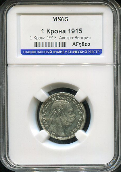 1 крона 1915 (Венгрия) (в слабе)